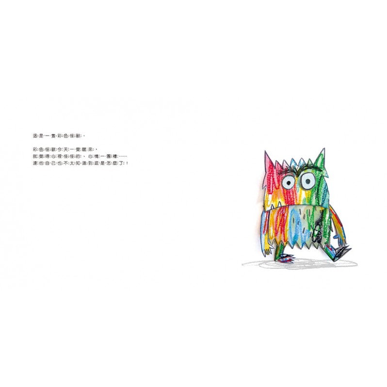 以情緒為主題的繪本大都強調情緒與生活情境的連結,以具體的生活事件描繪情緒的來源以及不當表現的後果,接著再試圖引導孩子學習情緒調節與合宜表達。但《彩色怪獸》則直接呈現情緒管理最基礎也最重要的能力元素~情緒覺察與辨識,讓孩子在充滿詩意的文字與藝術氣息濃烈的畫面中,自然而然地認識基本情緒。《彩色怪獸》呈現情緒管理最基礎也最重要的能力元素~情緒覺察與辨識,讓孩子在充滿詩意的文字與藝術氣息濃烈的畫面中,自然而然地認識基本情緒。《彩色怪獸情緒著色本》則讓孩子在選擇色彩時,再次認知情緒的特質、感受和表現,同時也讓孩子理解「情緒的產生多半來自於生活事件」。透過著色活動提升孩子對自我情緒的覺察,也具有宣洩情緒的療癒效果。