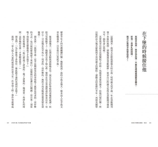 從孩子的角度來看,其實他也不會期待你先幫他打出一條血路。他只需要你好好愛他、聽他說話,在挫折的時候支持他、幫他找資源,而這些是你可以做,更是別人做不來的。