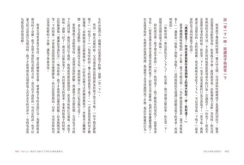 本書中,對於日復一日、頻繁上演的「因孩子或父母忍耐不了而衝突」的教養問題,