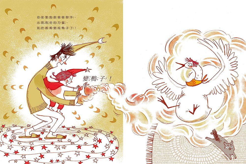 故事中的主角聯合爸爸一起把媽媽變成了一隻……鴨,