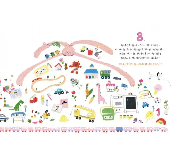 7 我的玩具也想跟我一起睡覺,我只要拿兔子娃娃就好,不然他會害怕。