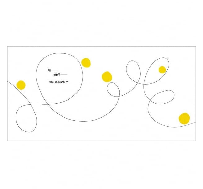 這次的小黃點很不一樣,當他溜過像雲霄飛車的圈圈,會說:「太好玩了!」,當他害怕時會墊起腳尖走路,當你搔搔他,他也會覺得好癢喔!