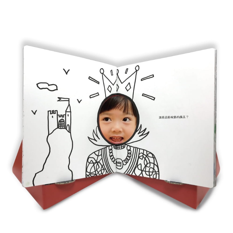 翻開這本書,你會發現上面有一個好大的洞,每一頁都藏著不同的驚喜。在這一頁,把臉靠上去,搖身一變就成了城堡的國王;下一秒,變成打造雕像的藝術家或是準備料理的大廚師;再翻到下一頁,喔!出現了一隻怪獸!挑戰把手小心地穿過怪獸的嘴巴……洞裡變化萬千,每一頁都是好玩的互動遊戲,孩子可以在小書或白紙上塗鴉,或是拿黏土、毛根、積木來蓋大樓、做雕像,打造三維空間。動動手,塗鴉或捏塑,訓練小肌肉;動動腦,用最喜歡的玩具或美勞材料,打造專屬於孩子的洞洞王國。