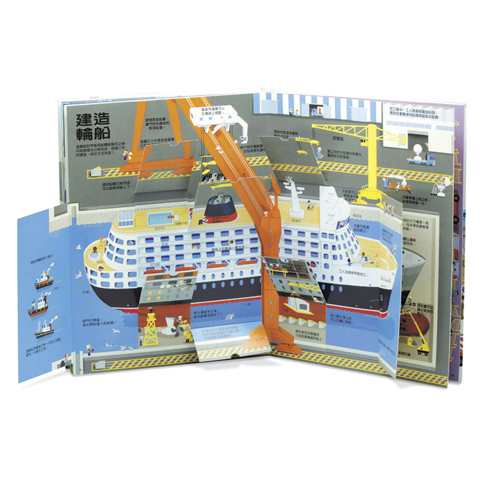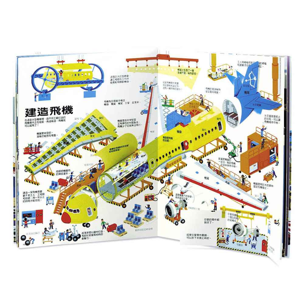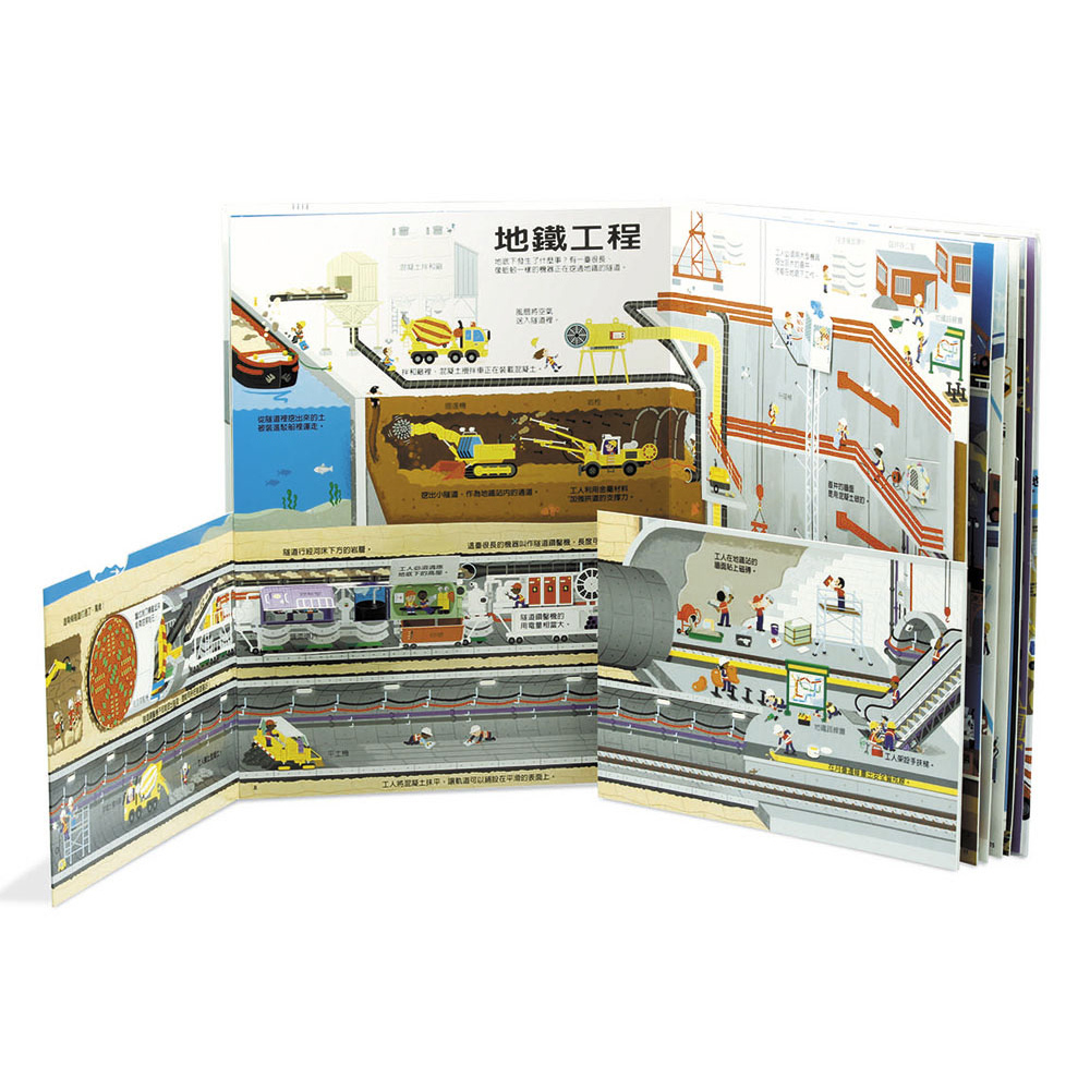 ◎超過60個操作零件和解說,知識力滿點馬路是怎麼鋪的?大樓的鋼筋混凝土牆是怎麼做的?輪船底部為什麼漆成紅色?開挖地鐵需要用到哪些工程車?本書描繪了興建大樓、架設橋梁、地鐵工程、輪船及飛機等,真實呈現各種建造工程的細節,還能看見壓路機、高架吊運車、隧道鑽鑿機……來回穿梭,彷彿親臨現場!