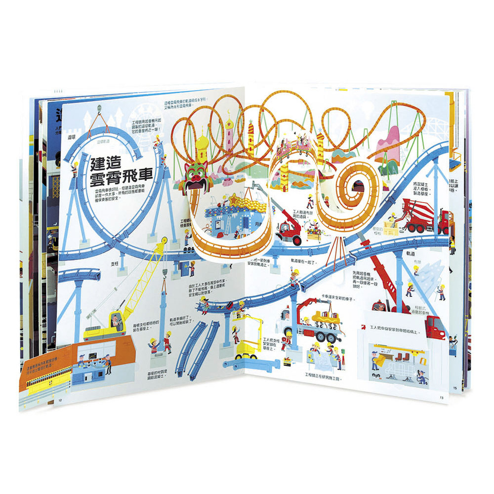 大人小孩都愛的工程遊戲書!興建大樓、鋪設道路、建造橋梁、搭建馬戲團帳篷、建造地鐵和雲霄飛車、打造飛機和輪船……