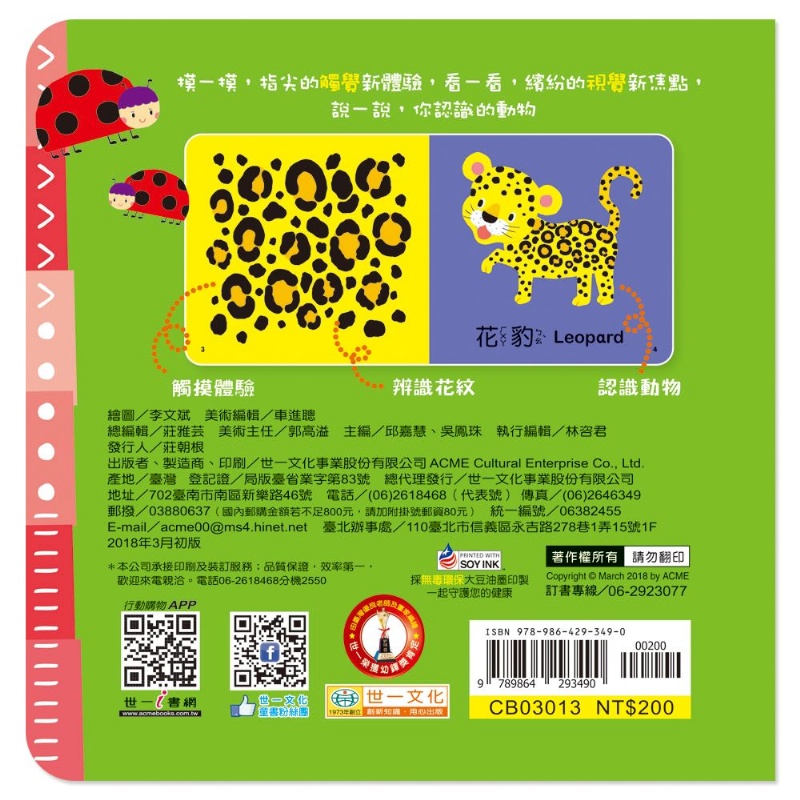 本書是專為0歲以上小朋友設計的數字觸摸書,厚紙書好翻不易毀損,書籍做圓角處理,使用上更安全。