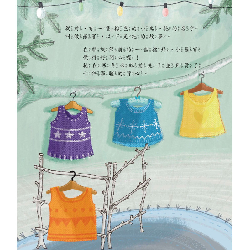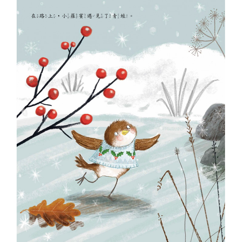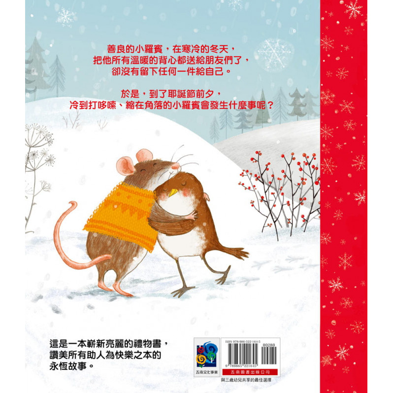 內容介紹: 善良的小羅賓,在寒冷的冬天,把他所有溫暖的背心都送給朋友們了,卻沒有留下任何一件給自己。於是,到了耶誕節前夕,冷到打哆嗦、縮在角落的小羅賓會發生什麼事呢?