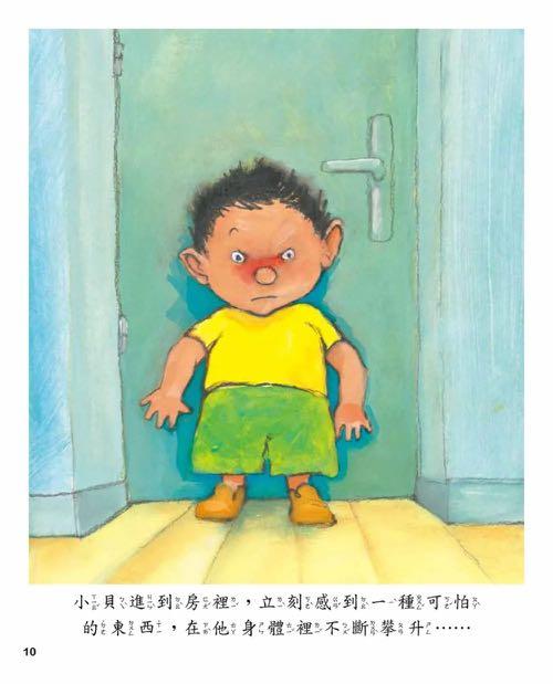 內容介紹: 這是一本關於協助孩子學習情緒管理的繪本,情節很緊張也很好玩,結局更令人意想不到,充滿童趣! 愛生氣的小男孩竟然從嘴巴裡跑出塊頭很大很大的紅魔怪!這個紅魔怪最愛幫壞脾氣的孩子摔東西,而且是破壞孩子自己的東西,包括:粗裡粗氣的扔棉被、枕頭;發瘋似地摔了床頭櫃、檯燈;又野蠻的舉起書櫃……地球儀、圖畫書、水彩盒等等全掉落一地。紅魔巨怪又將怒火發洩在玩具箱,不客氣地把裡面的東西全倒出來,模型汽車、小丑、機器人等等都遭殃……這下怎麼辦?就在場面失控時,愛生氣的小男孩發現紅魔怪的祕密……