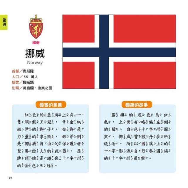 2、所有國旗以彩色圖片介紹,能真實了解各國國旗的樣貌與特徵,增加孩子識別的印象!