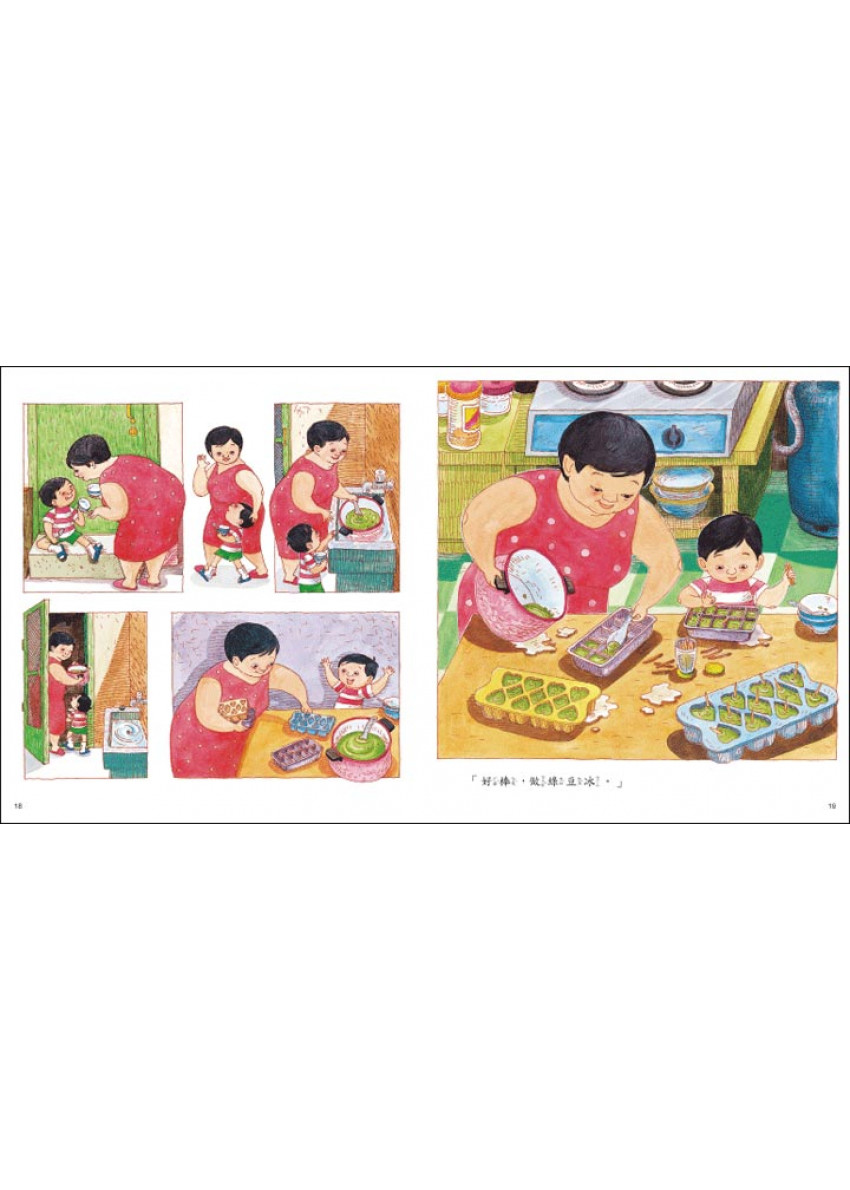 「女兒上高中後,我們一起動手整理她小時候看的圖畫書,一本本送出去;唯有這一本《媽媽,買綠豆》,是我們倆都想留下來做紀念的,因為這本『補釘書』,是我和女兒愛的證明。」……摘錄自呈熙文教基金會梁旅珠執行長在信誼幼兒文學獎上的感言