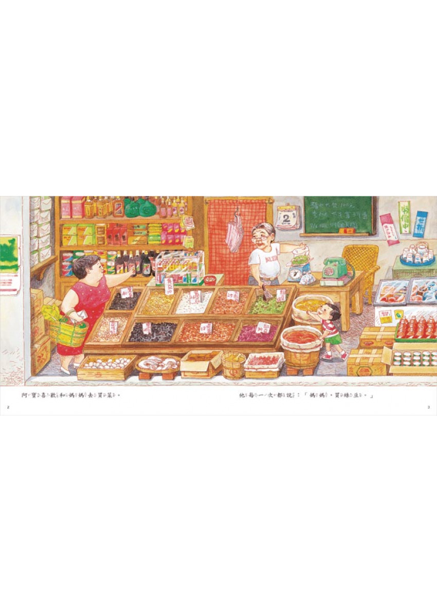 這本圖畫書,具有相當珍貴的台灣文化,作者從幼兒的生活經驗出發,讓我們在閱讀過程中,享受一種絕對的幸福。小阿寶跟我們一樣,都喜歡陪媽媽去買菜,每一次都會跟媽媽說:「媽媽,買綠豆」。
