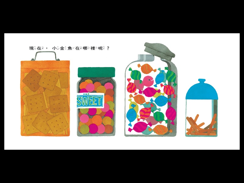 ★書腰附贈「小金魚貼紙」,你可以貼在家裡的各個角落,和孩子一起玩躲貓貓的遊戲,找找看小金魚藏在哪裡了?