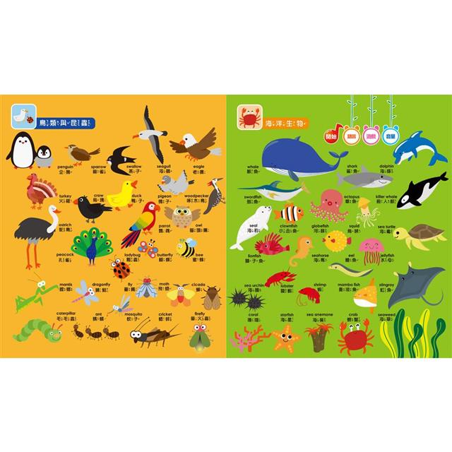 九九乘法、注音ㄅㄆㄇ、季節月份、問候語、動物、蔬菜、水果....等23個貼近生活的認知主題,收錄超過550個常用語詞,搭配可愛又細膩的插圖,輕鬆擴展孩子的詞彙量,同時奠定多面向認知基礎。