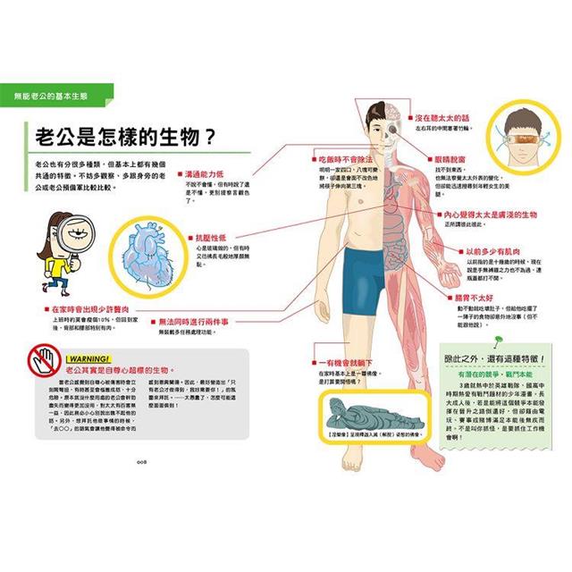 內容介紹: 妳的老公是哪種無能老公?本書是以日本所採集的樣本彙整而成的無能老公圖鑑,附傾向&對策喔。 我的老公為什麼會這麼沒用啊?如果妳覺得自己很不幸,有個好消息要告訴妳。其實世間的老公全部都是無能老公,只有程度差異罷了!!圖文作家井上ミノル觀察、蒐集並整理身邊各式各樣不OK老公的特性與生態,以詼諧的插圖與文字為未來的新女性分憂解勞。看完這本爆笑圖鑑,太太們又可以迎向燦爛美好的明天。 規格:平裝 / 112頁 / 14.7 x 21 x 0.9 cm / 普通級 / 雙色印刷 / 初版
