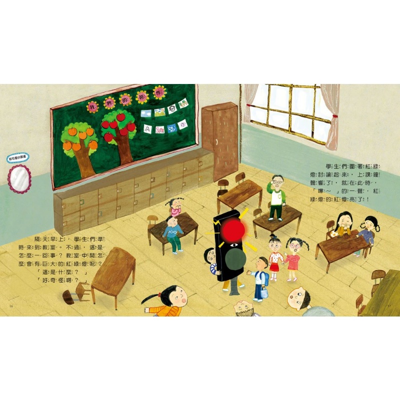 學生在教室弄丟的物品,全都變成神通廣大的妖怪!他們聚在一起思考怎麼懲罰那些上課不守規矩的孩子,最後決定派出紅綠燈妖怪,只要發現有學生違規,馬上發出「嗶~」的聲響,並告訴他犯了什麼錯。教室裡的學生該怎麼做,才能讓紅綠燈妖怪消失呢?翻開繪本,一起看這個有趣的故事吧!