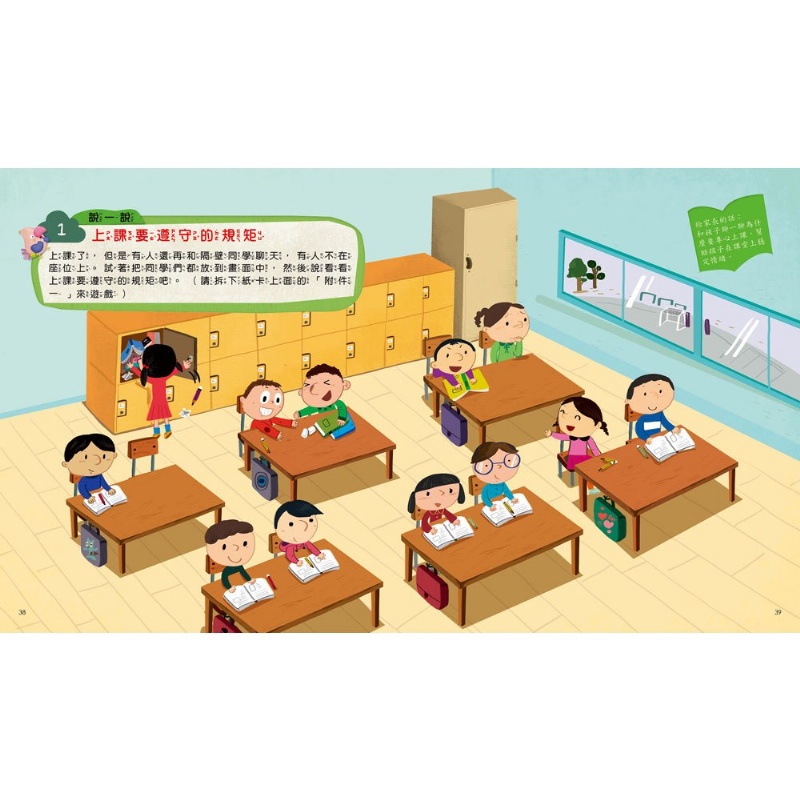 ★故事闡述在學校可能遇到的情境,讓孩子上課守規矩並專心聽講。