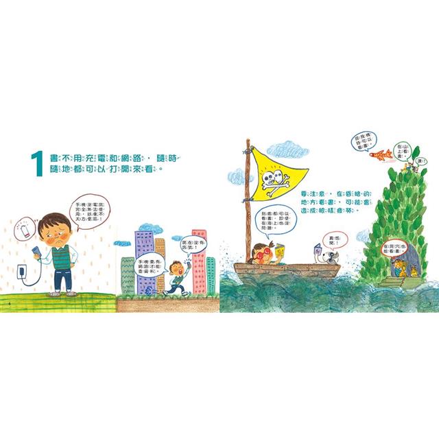 小朋友,無聊時別找手機,去閱讀各類你有興趣的書籍吧!你會發現看書可以學到許多新奇的知識,找到自己有興趣的事物,並且激發你的創造力和想像力,超級有趣不無聊,還能跟朋友一起分享。
