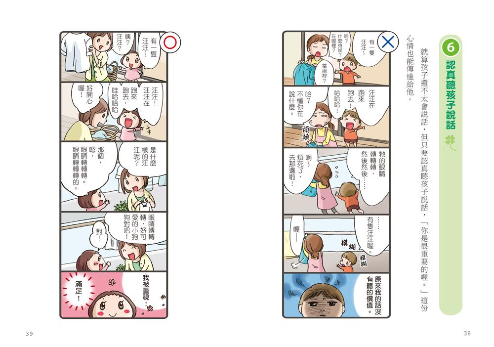 運用生動可愛的輕鬆情境漫畫、貼切有趣的情節,讓家有嬰幼兒的父母產生共鳴,看著看著就會爆笑與流淚,負能量也一掃而空。