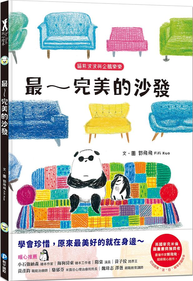 「貓熊波波與企鵝樂樂」系列目前有《最完美的沙發》、《今天一起去露營》兩冊繪本,已出版英、法、日、韓等多國版本,並受到大、小讀者的喜愛。作者郭飛飛以溫暖的筆觸創造出貓熊與企鵝這兩個身上只有黑和白的角色,有種看起來相似卻又大不相同的幽默,而且他們還是超級好朋友,這也提醒了我們,只要心靈相通,根本不用在乎種族、膚色、外型等,相處起來開心最重要!