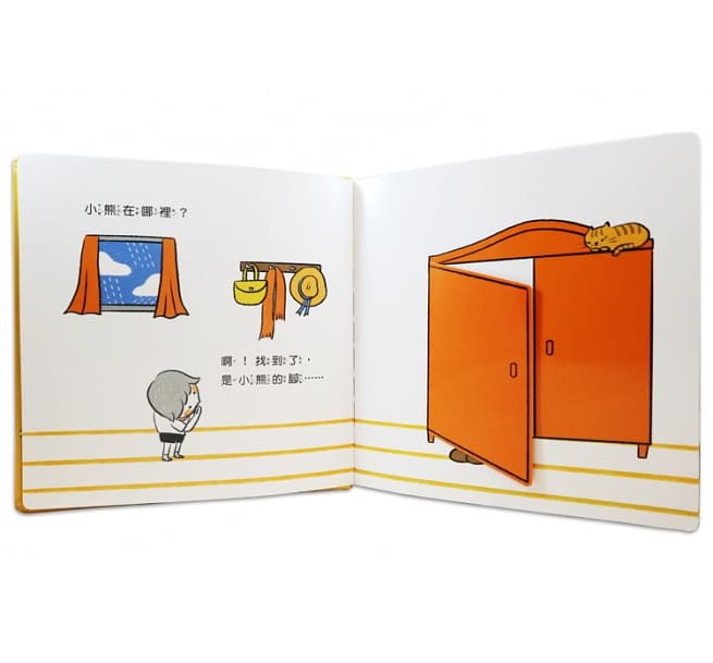 內容介紹: 每一頁都是驚喜! 找找小熊在哪裡? 小熊,是許多孩子的好朋友。當故事中的主角──聾孩子的小熊不見時,他著急的在家裡尋找,一次又一次的自問「小熊在哪裡?」即使一次又一次的誤認,仍充滿了偵探般的樂趣。 《小熊在哪裡?》不只是故事,透過動手「翻頁」的遊戲方式,以孩子的視角去發現最親近的小熊與家人,其中更隱藏手語學習的彩蛋。 每書附贈小熊書卡一只,讓孩子可按頁對照小熊的身體外貌,不設限孩子的使用方式──是卡片、是書籤、更可當作「朋友」──親子共讀,親子共樂,找找小熊在哪裡!