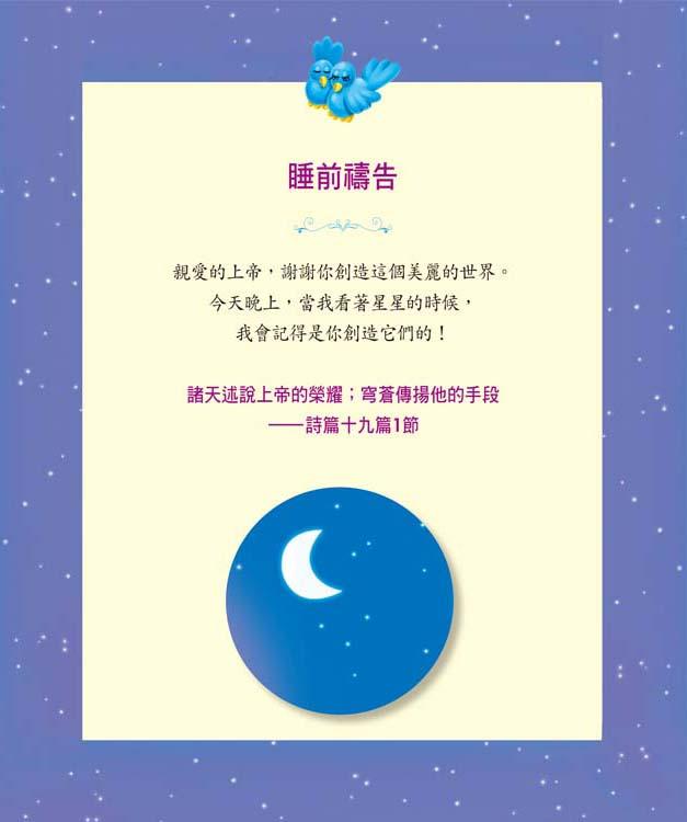 內容介紹: ★ 原文書於美國暢銷2,500餘冊! ★ 給寶貝睡前的最佳良伴! ★ 美國亞馬遜五顆星好評! 本書精選新舊約著名的20個福音信息,容易朗讀與明白的文字,讓爸媽在睡前講故事給幼兒聽,搭配表情生動的可愛3D立體人物插圖,吸引幼兒的注意。除此之外,每篇故事結束還有一篇禱告,和一節金句,讓孩子學習向天父上帝禱告,與天父的關係更親密。