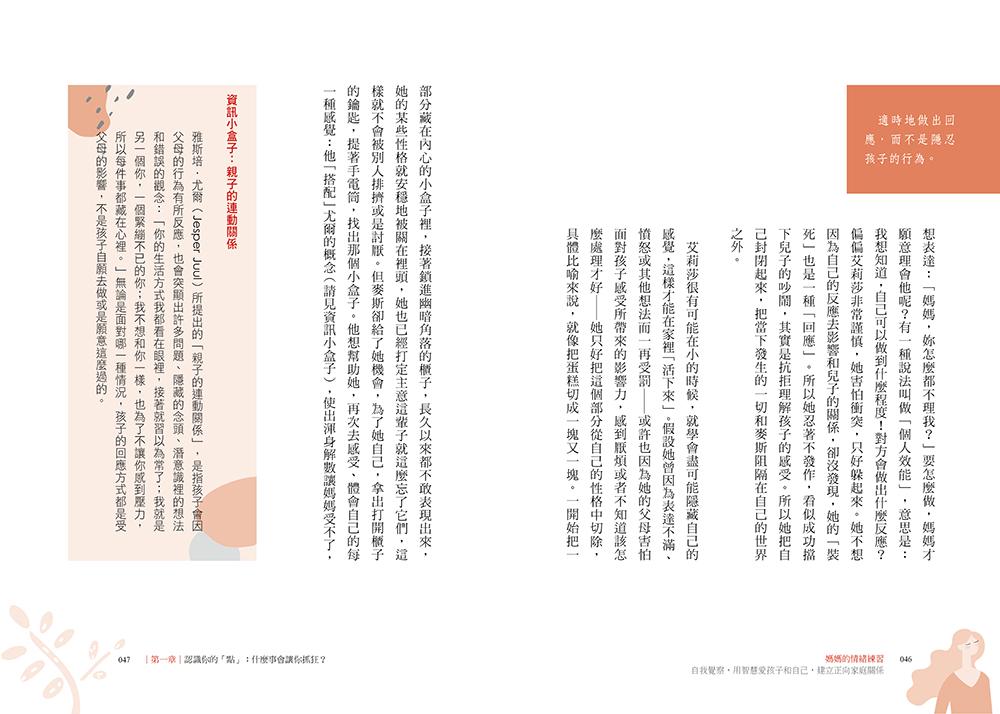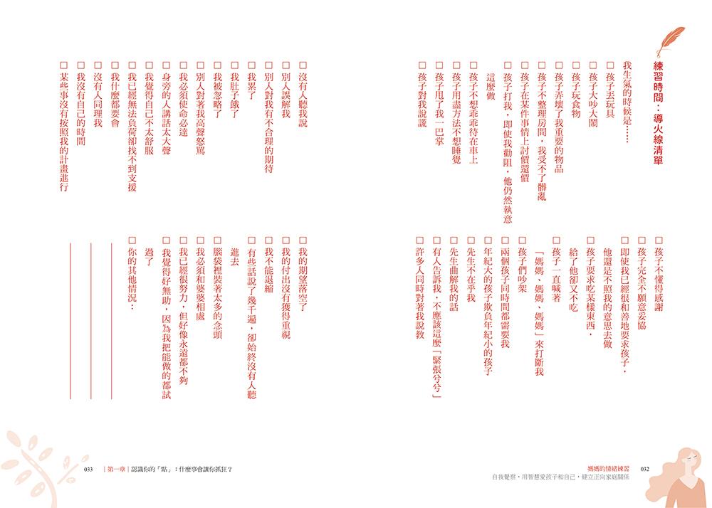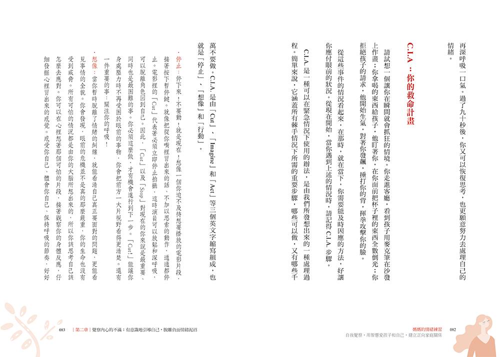 每個媽媽都知道,面對孩子不配合、搗蛋的情況,在壓力下爆發的情緒風暴有多可怕──那理智線斷掉的瞬間,自己彷彿變成了另外一個人,無意識地講出恐怖的傷人話語,甚至動手懲打眼前無助的小小孩⋯⋯而當下憤怒的情緒過去,理智清醒之後,又會陷入懊悔自責的漩渦,更必須重新努力,修復傷痕累累的親子關係。