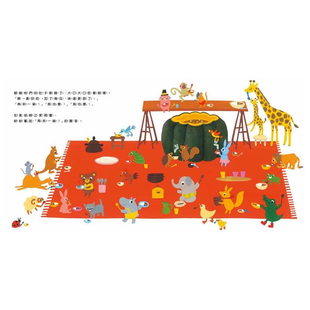 這個溫暖人心的故事,傳達了分享的美好,以及合作互助的成就感,充滿溫馨愉悅的場景和氣氛,讓人一邊閱讀,一邊心頭暖暖的,迫不及待也想登上小山丘,一起參與這場充滿驚喜的派對!
