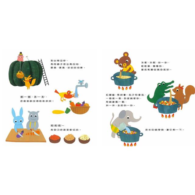 ★爸媽帶著孩子親自體驗栽種的樂趣,或在廚房裡動手洗菜、切菜、煮食,就像故事中河馬啵啵和朋友們一樣,經過一番切煮拌炒之後,享受食物豐美的滋味。