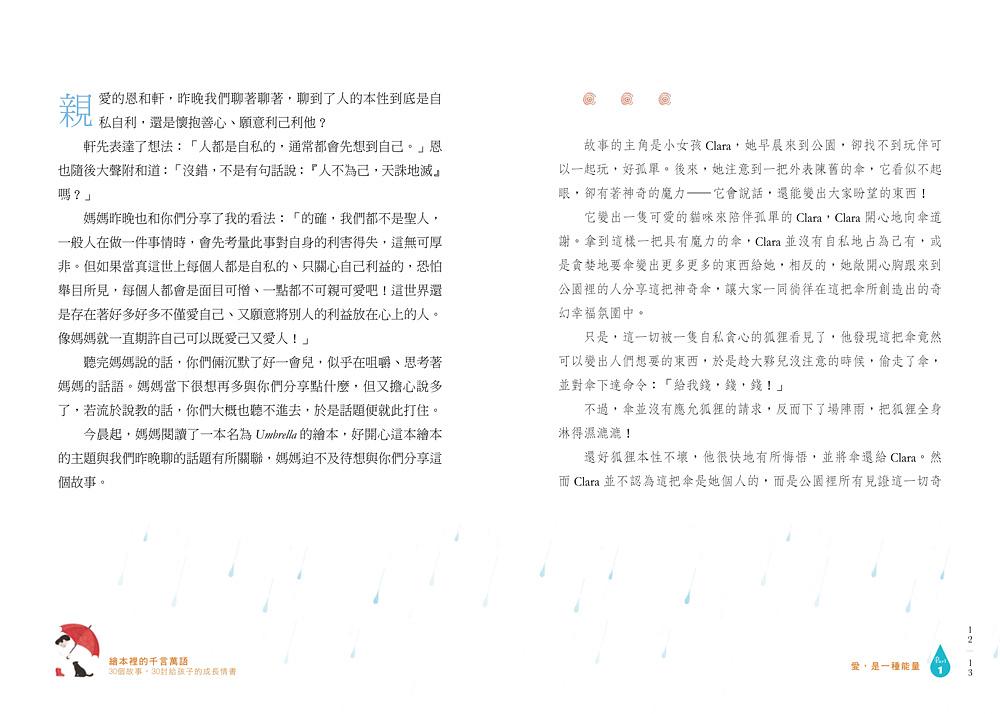 親子間值得交流探索的議題,都可藉由繪本和書信,以溫柔的方式,打開孩子的心、豐厚孩子成長的羽翼,讓他們帶著堅定、勇敢和自信,迎向往後更大的世界!