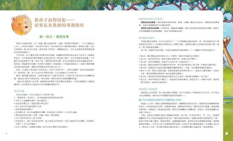 ★收錄「教孩子面對侵犯──給家長及教師的導讀指南」!向家長、老師和教養者詳細說明「性侵」的各項須知,包括:唸故事前的注意事項、如何運用繪本、面對孩子的提問,並透過遊戲和情境練習,讓孩子學習如何保護自己。