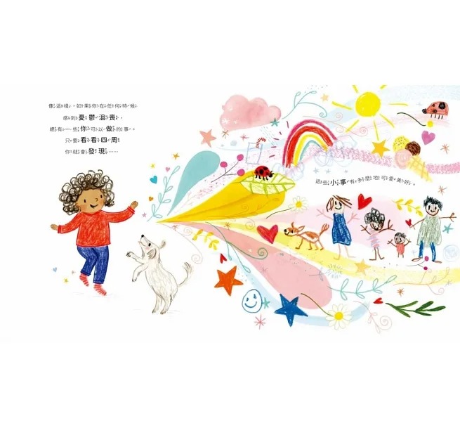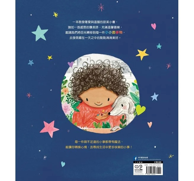 故事中的小女孩,在生活中尋找讓她快樂、微笑或驚喜的每一件「小事」。