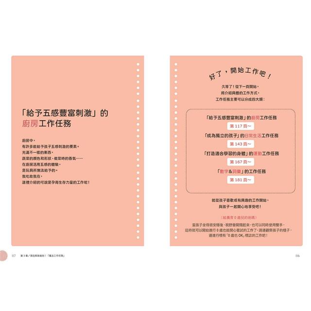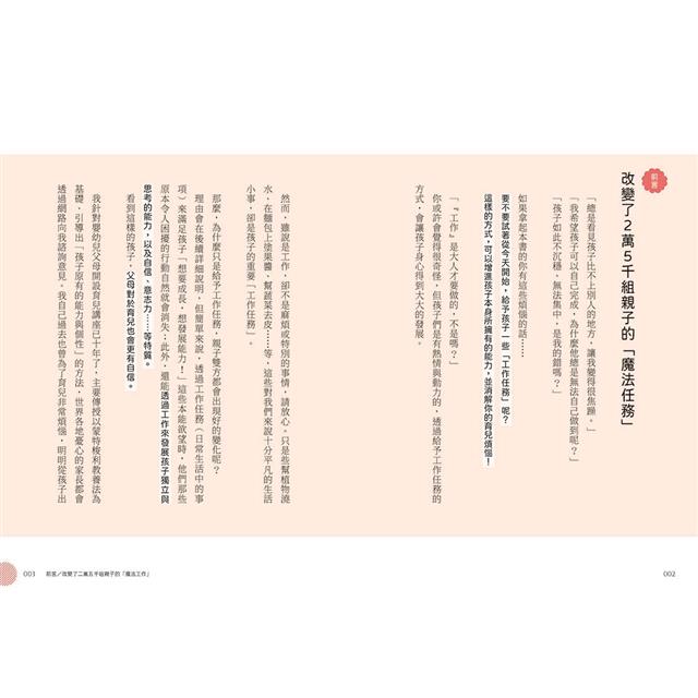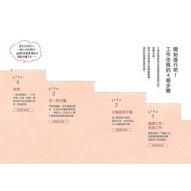 3.收錄17個工作任務Q&A、2則「大人的工作」單元企劃,解決孩子在進行工作任務時容易放棄、害怕失敗、不照示範進行⋯⋯等各種困擾。