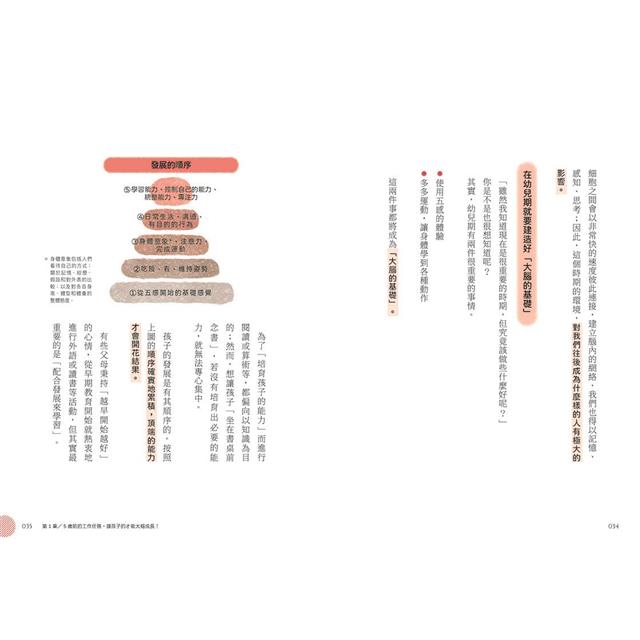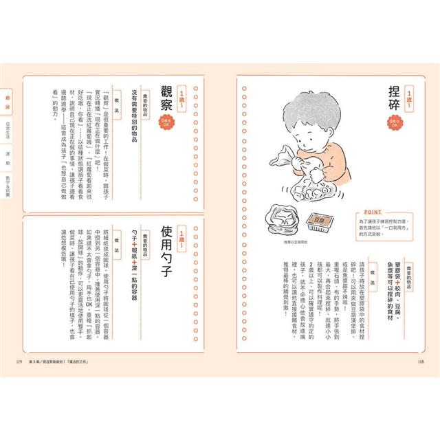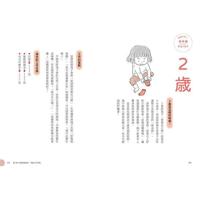 2.全書內容層次豐富,以溫馨可愛的插圖搭配詳細說明,可輕鬆理解蒙特梭利教育理念。