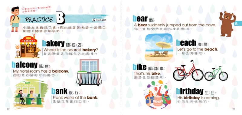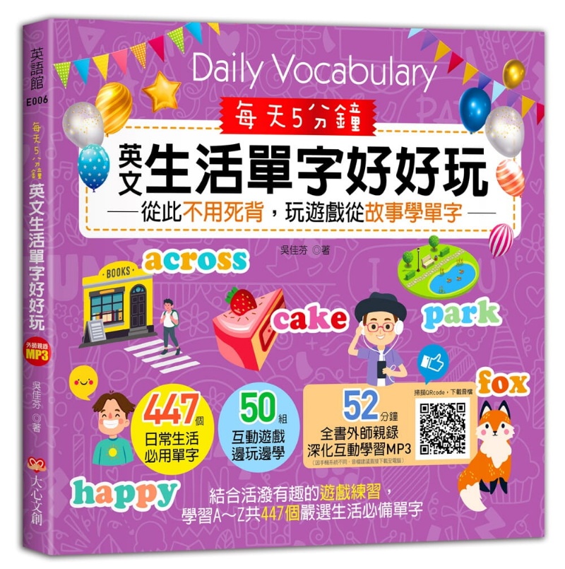 從日常小事、特殊節日、學校生活、到情緒表達,書中嚴選小朋友們生活中會出現、會用到的基礎英文單字,配上實用的例句及可愛的插圖,更有美籍外師專業親錄音檔,收錄在書中QR code,輕鬆一掃就能把專業名師隨身帶在身上陪你學英文!