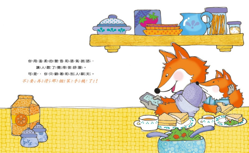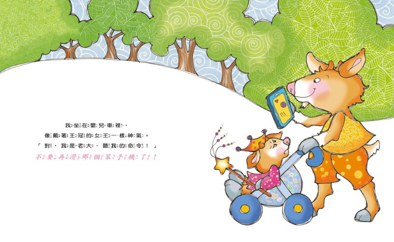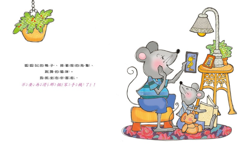 不過,只說一次好像不太夠。因為不論什麼時候、什麼場合,爸爸媽媽總是盯著手機看,不停地滑呀滑,明明我就在他們旁邊,我也可以和他們分享有趣好玩的事情,但是,他們似乎覺得,對著小小的螢幕和別人傳訊息更開心。