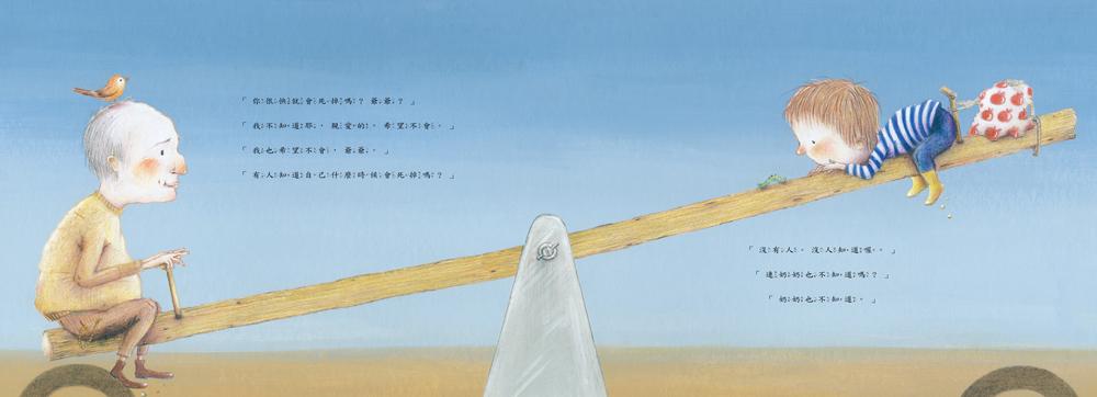 可是,死掉是什麼呢?死掉之後會怎麼樣呢?克里斯欽漸漸浮出對死亡、對生命的一連串疑惑,他在與爺爺散步的途中,聊起這些聽起來天真卻很深沉的問題。