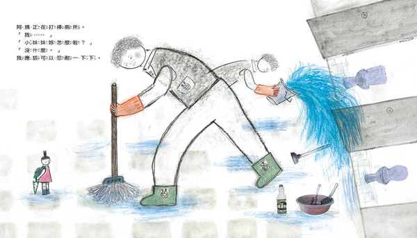 小女孩雖然最後沒能憋住,沮喪的責備自己,但是幸好當天下著雨,讓她意外鬆了一口氣。在故事肯定所有孩子為了克服困難所做的努力嘗試,就算有時仍會無法達到要求,也能給予包容的空間。