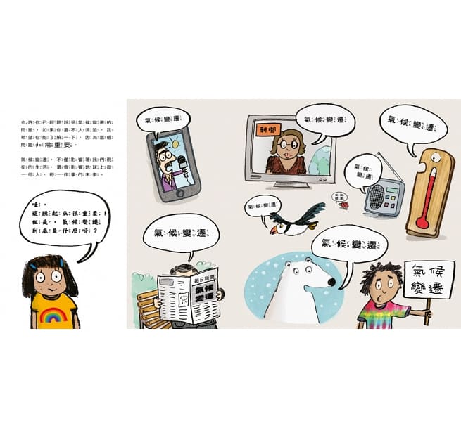 「環境保護」、「氣候變遷」、「地球暖化」……這些標語大家時常看見,因為新聞常報導、老師常提起,可是孩子心裡總會問,這真的跟我有關係嗎?這本書透過幽默的敘述和大量圖片輔助,清楚地和孩子解釋氣候議題與我們的生活是如何緊密連結,也讓孩子了解這個問題的急迫性。我們每一個人都有責任守護我們生活的環境,每個人都可以幫上忙!思考自己可以做出哪些改變,為阻止氣候變遷盡一份心力!