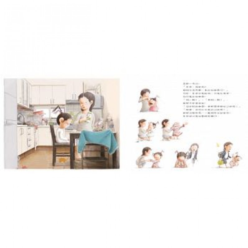 本書原文為韓文。作者以一天為時間軸,以同一時間左右跨頁互相對照的方式,呈現出媽媽上班、孩子在學校各自做了些什麼又發生了哪些事,是一個關於母子親情、相互依賴,寫實動人的小故事。