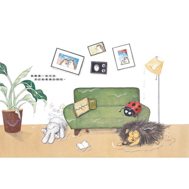 小刺蝟的媽媽成天嘮叨他:不要再睡了!不要再吃糖了!不要再玩遊戲了! 要多吃點青菜!多喝點水!早點睡!小刺蝟以充耳不聞、假裝在忙別的事,使出總總方法應對,但總是逃不出媽媽的手掌心。於是,小刺蝟決定反嘮叨媽媽!哈哈!這招肯定有效!但是,要嘮叨一個人可不是件簡單的事呢!首先,得時刻關注那個人的一舉一動,才能抓到嘮叨的點。小刺蝟時時盯著媽媽,比如在媽媽掃地時,突然跳出來嘮叨她漏掃了一根刺;在媽媽吃東西時,跑出來嘮叨她不是說要減肥嗎?上完廁所,嘮叨媽媽忘了關燈……