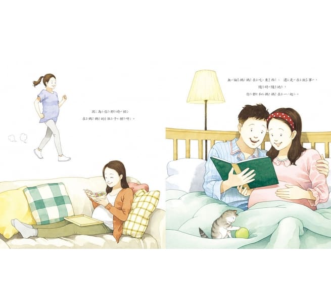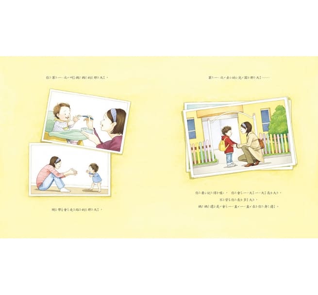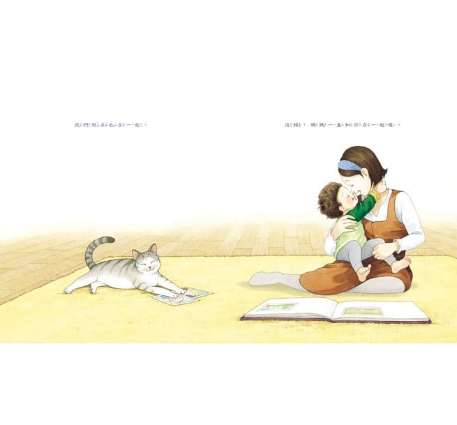 是呀,從這個時候開始,媽媽就一直和你在一起了喔!你在媽媽肚子裡的時候,我們不管做任何事情都待在一起,當你出生以後,媽媽看著你一天一天長大,不管是第一次叫媽媽、學走路時踏出第一步、第一天上幼兒園……媽媽一直都在你身邊。
