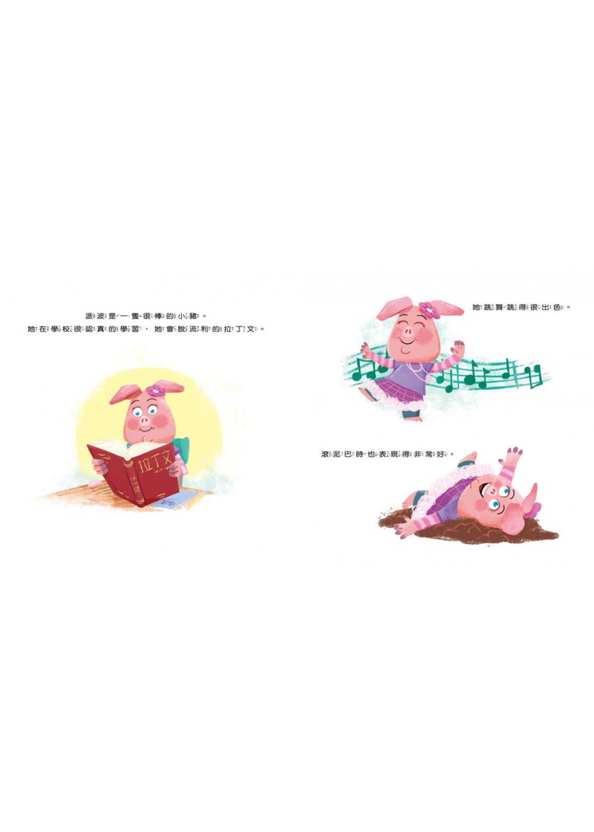派波是隻認真學習、拉丁文說得很流利,跳舞、滾泥巴都難不倒她的優秀小豬。