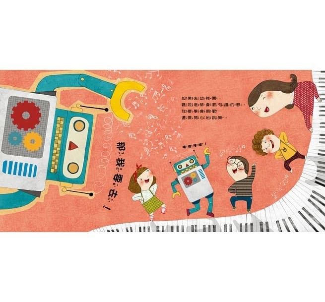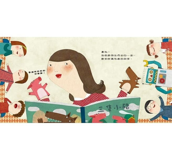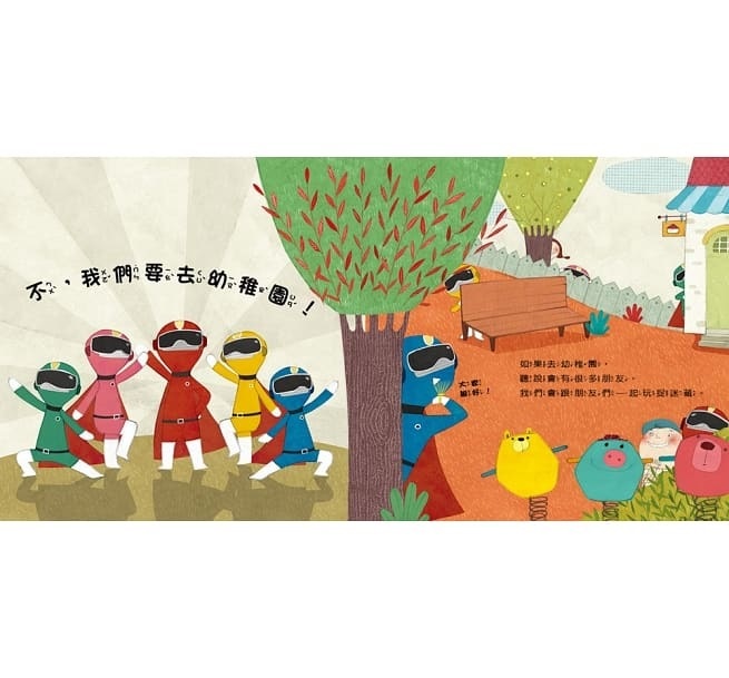 明天開始要上幼稚園的小男孩,悶悶不樂地坐在沙發上,跟他的許多玩具好夥伴們訴苦,他不想去,媽媽和喜歡的玩具都待在家,為什麼要去幼稚園?玩具們一聽小男孩的話,爭先恐後講述自己聽說在幼稚園的有趣活動,紛紛自告奮勇說想去幼稚園!機器人嘰哩嘰哩的舉起手臂說,聽說去幼稚園可以學唱歌跳舞,他想跟朋友們坐在一起聽有趣的故事;超人五兄弟挺身說,聽說去幼稚園能跟朋友玩捉迷藏,他們想教朋友如何變身;恐龍玩偶也很興奮,因為聽說去幼稚園有好吃的午餐,還可以動手學做三明治;泰迪熊也附和說想去幼稚園,因為聽說幼稚園會去動物園就能看到真正的熊,還會公園郊遊。小男孩的玩具們圍成一圈,生動的比手畫腳,表示對幼稚園的嚮往,讓小男孩也對去幼稚園充滿期待,最後叉著腰充滿信心的說:「那我也要去幼稚園!」幼稚園這麼多好玩的活動,才不能少了他呢!