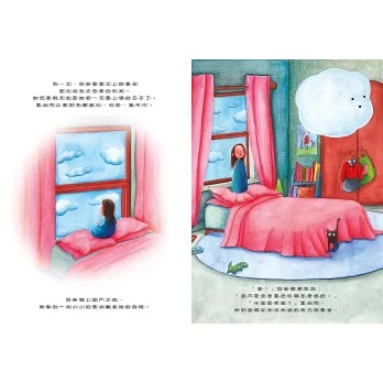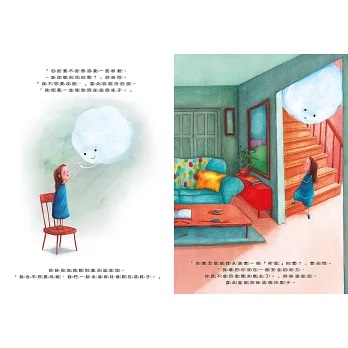 小小孩貝絲擔心著明天要開始上學了,她不喜歡改變,去上學,這個改變對她來說,太大了呀!這時候,有一朵雲飄進她的房間,說:「我也不喜歡改變,我希望我永遠都像現在這個樣子。」原來貝絲和雲朵都有共同的心願哪!於是,貝絲決定幫助雲朵永遠留在她家、永遠不要改變形狀了。