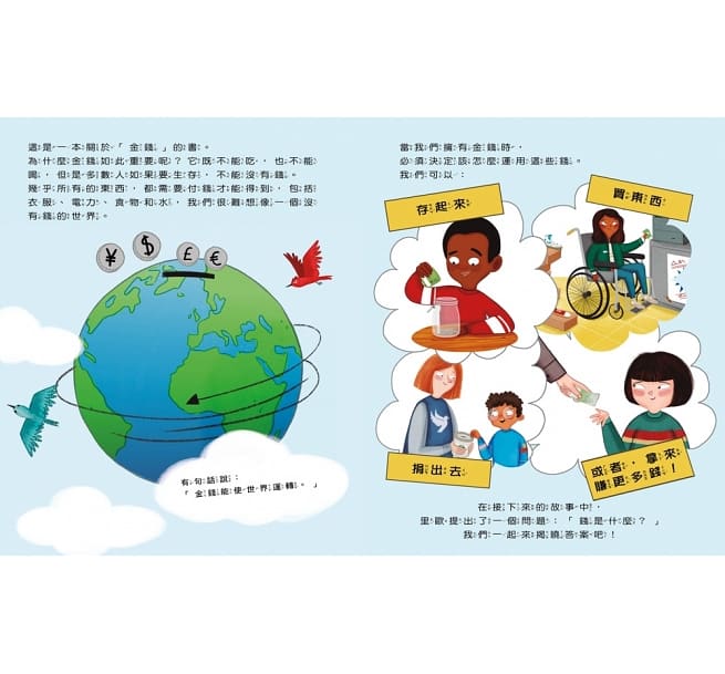 還有,既然很多東西都要用錢來買,為什麼爸爸不用出門就可以在家買東西、媽媽不用鈔票付錢而是用一張叫做信用卡的卡片、而姐姐只要在手機上點幾下就付好錢了?這些錢到底存在哪裡,又去了哪裡呢?
