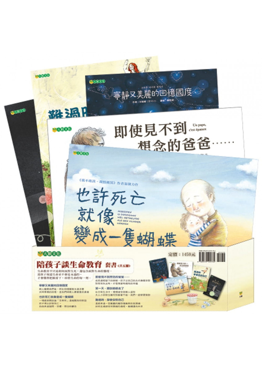 每本書的主題從孩子常有的疑問出發,每個人都有一天也會離開嗎?生命離開後會去哪裡?想念離開的親人怎麼辦?等等,透過故事讓孩子慢慢認識、理解、接受生命的本質。對生命終點的看法,會決定面對生命的態度,進而影響孩子人生的價值觀。從現在起,讓孩子對生命有所自覺,珍惜身邊遇到的每一個人、生命經歷的每一刻,就是給孩子最珍貴的禮物。