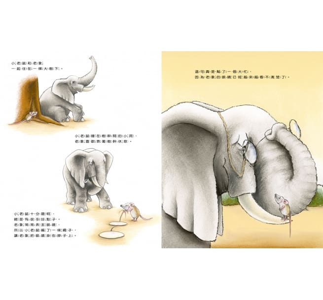 「我要你陪著我,直到永永遠遠。」小老鼠這麼說,老象也點點頭答應。但是看著身體一天比一天虛弱的老象,小老鼠漸漸明白,也許時候真的到了,雖然捨不得和老象分開,她會勇敢並努力實現朋友最後的心願……