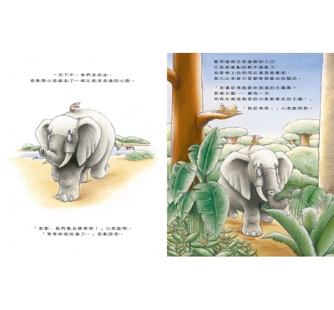 聰明的小老鼠和強壯的老象是好朋友,他們一起去過好多地方,直到有一天,年紀愈來越大的老象和小老鼠提起了大象天堂,那是一個所有生病、年老的大象們最後會去的地方,一個快樂的地方,他的好多朋友和家人已經在那裡了。老象在心裡默默的想著,也許就快輪到他了。