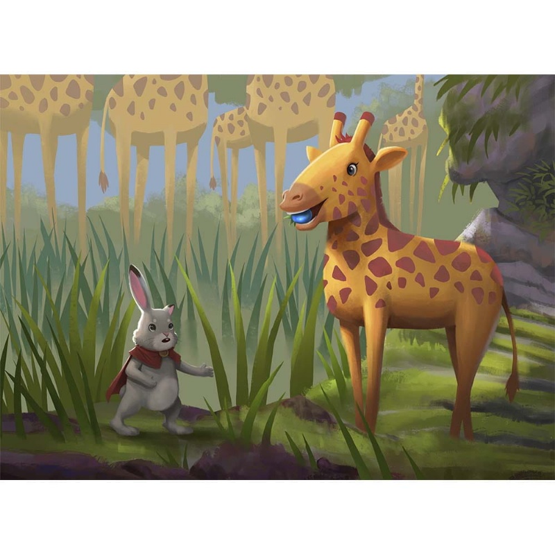 德國哲學家萊布尼茨說:「世上沒有兩片一樣的雪花,每一片都獨特漂亮。」書中,小兔子隻身前往森林途中,結伴了愛嚼藍光果實的長頸鹿、能造木童玩的猴子、歌聲悅耳的巨龍,一夥人卻在魔法師的魔法光芒中,萌生了退意……。如同繁星閃耀,每一顆,都是相互輝映、缺一不可的存在。