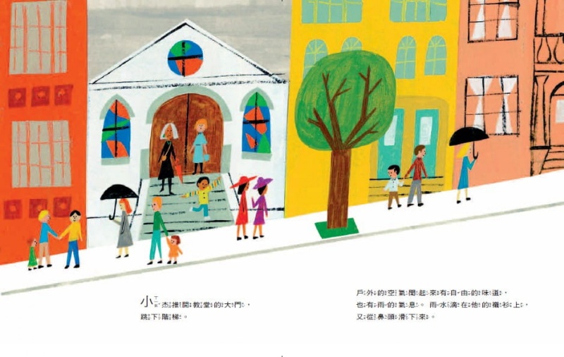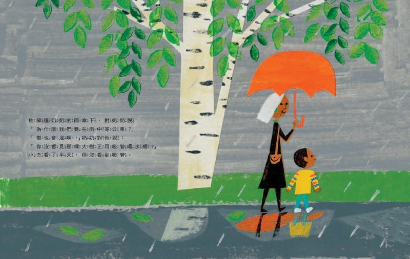 善於用圖像說故事的繪者克里斯汀,用壓克力顏料、壓印和拼貼作畫,充滿童趣的畫風,搭配簡略的黑線與鮮豔明亮的色塊,充滿能量、活力十足,讓這個溫暖又動人的故事立體而鮮活起來。圖文之間的互補與空間,使讀者可以憑想像勾畫小杰和奶奶的生活景況,體會小杰心中的不平。